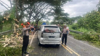 Evakuasi pohon tumbang oleh anggota polres Bulukumba